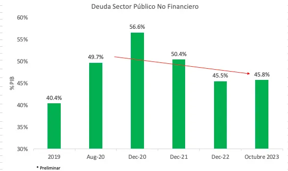 Hacienda revela deuda del Sector Público No Financiero disminuyó un 3.9% del PIB en octubre