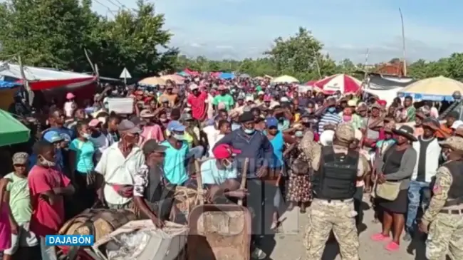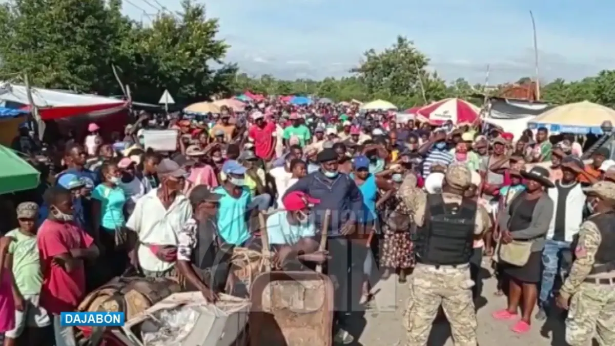 DAJABÓN.- Miles de haitianos se apostaron próximos al puente internacional tratando con desesperación de entrar a Dajabón a comprar productos para llevárselos a sus familiares en su país, esto ante la falta de alimentos que han sufrido en los últimos días, como consecuencia del cierre del mercado binacional.