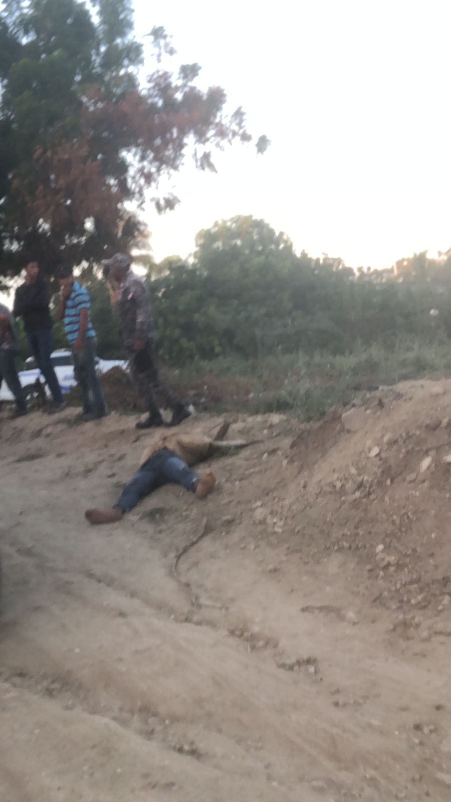 El informe preliminar indica que fue hallada una nota manuscrita en el pecho que dice “se le acabó a este robar bancas de loterías de Dajabón, Navarrete y Montecristi”.