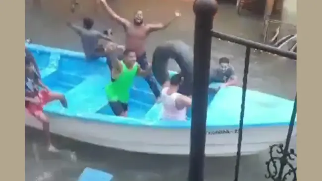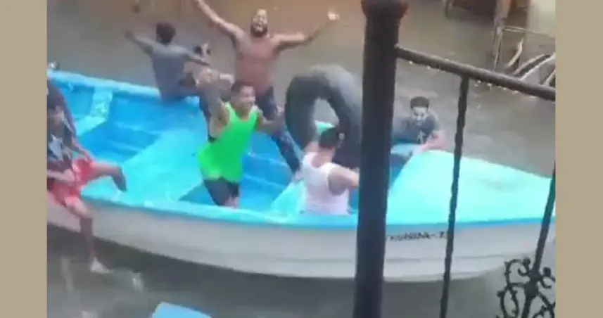 ¡Hasta en bote! Ciudadanos no acatan llamado de la PN por tormenta