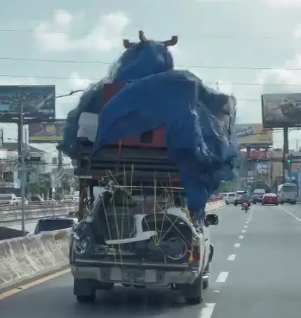 ¡Hasta la pasola subieron! Camioneta transporta mudanza en la avenida 27 de Febrero
