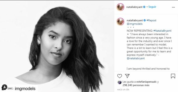 Natalia Bryant, la hija mayor del jugador de baloncesto Kobe Bryant, fallecido hace un año, anunció hoy su inicio en la carrera de modelaje.