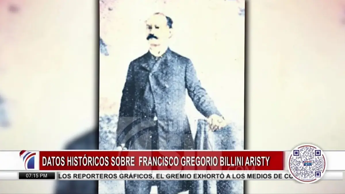 SANTO DOMINGO.- Francisco Gregorio Billini Aristy Periodista, educador, novelista, restaurador y presidente de la República Dominicana. Nació en la ciudad Santo Domingo, el 25 de Mayo de 1844.; Puso de manifiesto su patriotismo al protestar contra la anexión de la República hecha por Pedro Santana a España.