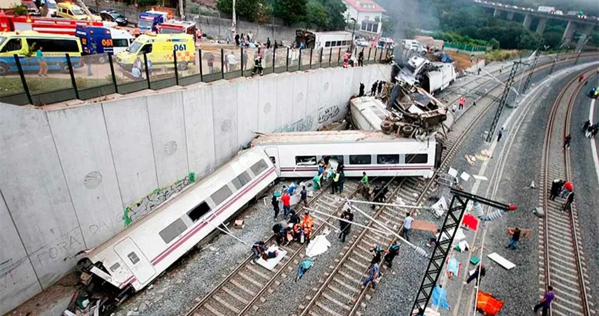 24 de julio de 2013.- 79 personas fallecen y 143 resultan heridas al descarrilar un tren de velocidad alta que cubría la ruta Madrid-Ferrol en Angrois, en las inmediaciones de Santiago de Compostela.