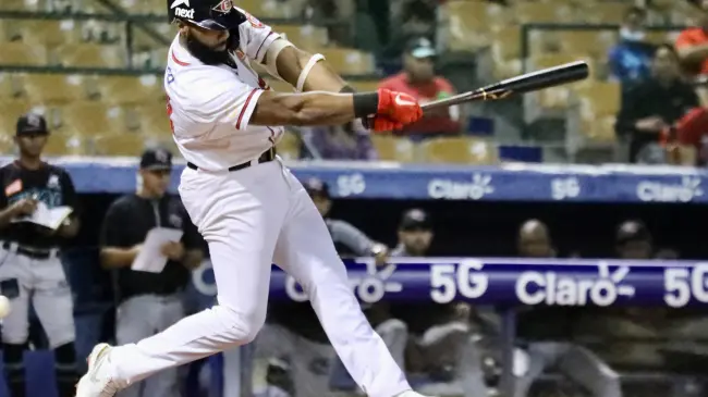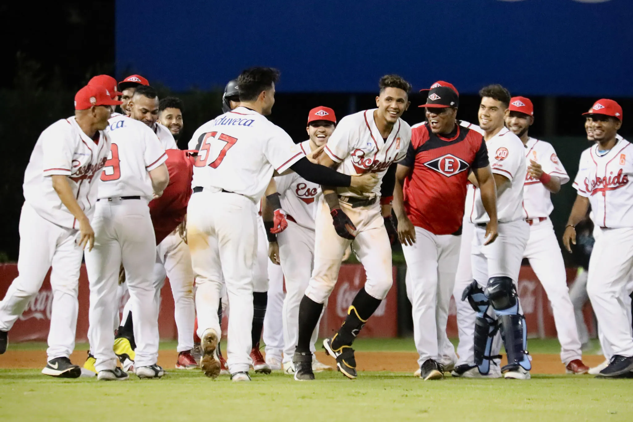 En esa misma entrada con el juego 5-3, Carlos Pimentel subió a la lomita y otorgó transferencia a Franchy Cordero, permitió un sencillo de Aramis García al bosque derecho y colocó a los corredores en las esquinas por un lanzamiento salvaje. Cordero anotó la cuarta rayita roja con un rodado al campocorto por parte de Luis Liberato.
