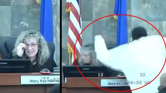 REDACCIÓN.– Redacción.- La jueza Mary Kay Holthus, del condado Clark, en Las Vegas, Estados Unidos, fue atacadapor un hombre, en plena audiencia, luego de escuchar que la magistrada le había negado la libertad condicional.