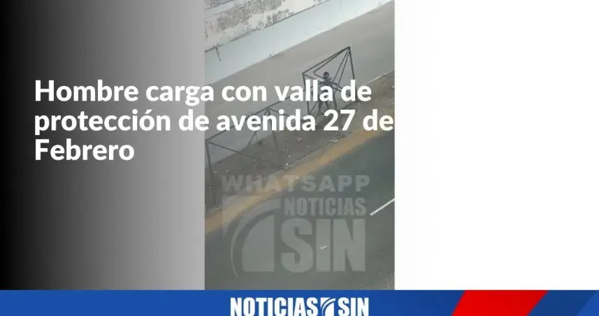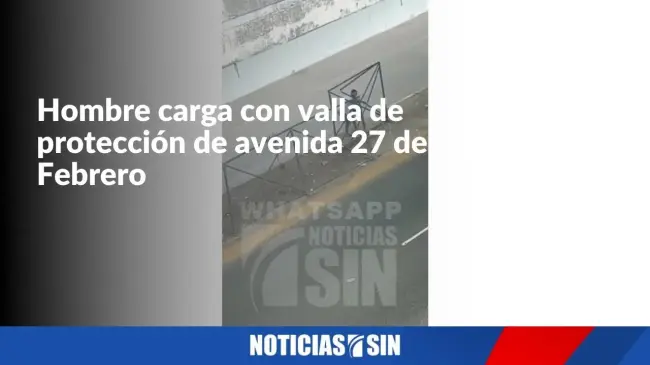 Cargando con una de las vallas de protección de la avenida 27 de Febrero como si estuviera tomando un objeto de su propiedad, así fue captado en vídeo un hombre en la referida avenida.Las informaciones suministradas indican que esa no es la primera ocasión que el hombre realiza esa acción.Usted puede enviar sus denuncias, fotos o vídeos a nuestro número de WhatsApp 809-535-8383.