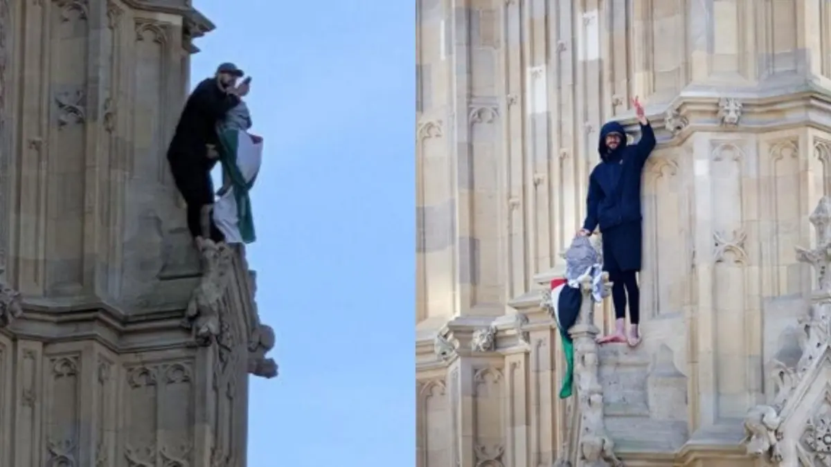 Hombre con bandera palestina sube al Big Ben y moviliza los servicios de emergencia