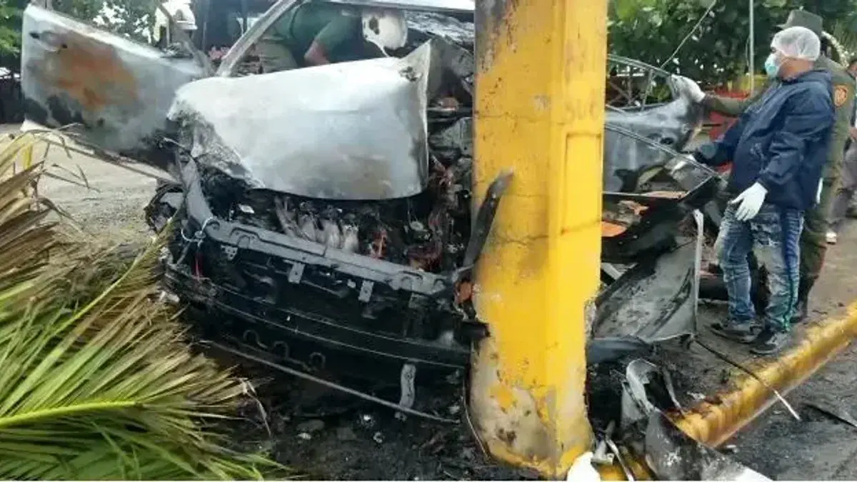 SANTO DOMINGO.- Un hombre murió calcinado tras impactar contra un poste del tendido eléctrico e incendiarse el vehículo que conducía en la avenida Hermanas Mirabal, San Francisco salida a Tenares.