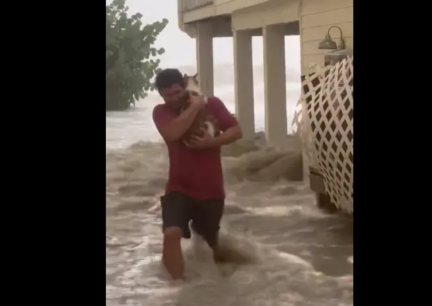 FLORIDA.- Totalmente mojado y aparentemente asustado se encontraba un gato, el cual fue rescatado por un hombre en las afueras de una vivienda bajo los fuertes vientos y lluvias que azotan el estado de Florida debido al paso del huracán Ian por la zona.