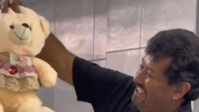 Sin embargo, le pidieron que lo presionara, pues ‘hablaba’. El hombre siguió las indicaciones y sin más comenzó a llorar. El peluche tenía la voz de su esposa grabada.