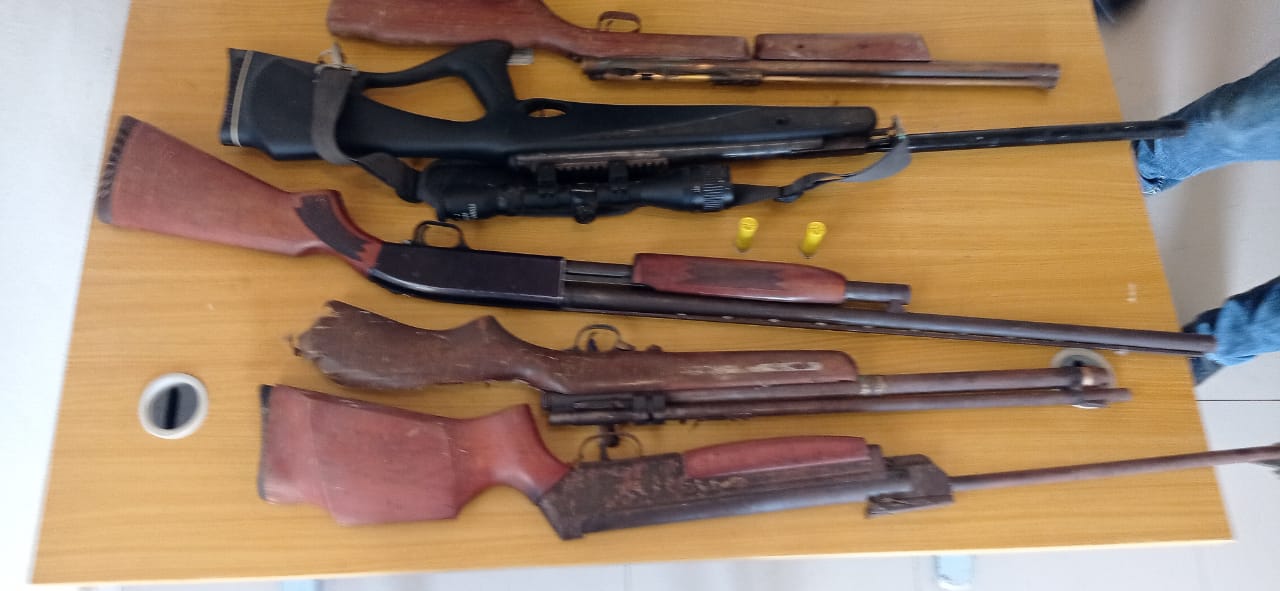 El detenido es Santo Tejada, de 45 años de edad, residente en la calle José Matiz del barrio La Tormenta, quien al momento de ser arrestado tenía un rifle de perdigón negro, con miras telescópica en la mano.