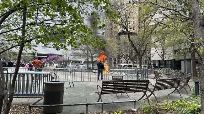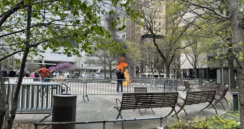Hombre se prende fuego a las afueras del tribunal que juzga al expresidente Trump