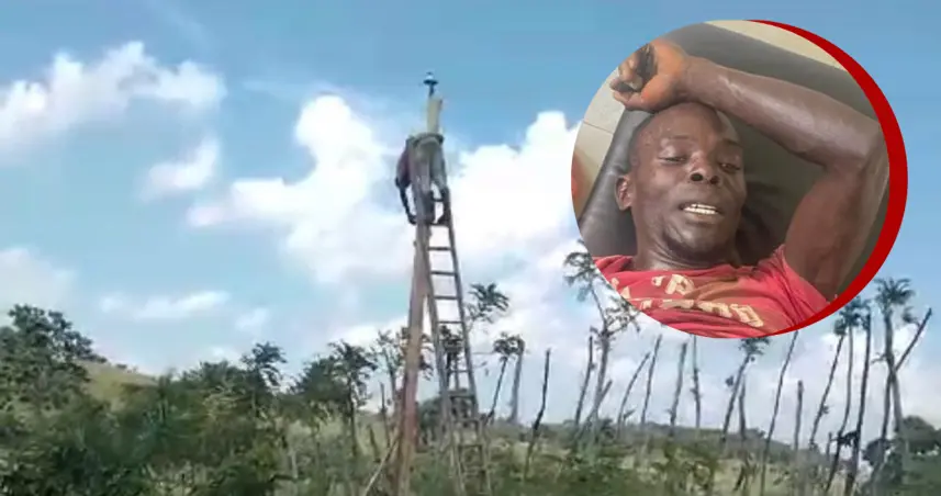 Según testigos, los hombres estaban realizando una instalación eléctrica para una finca del lugar, sin ninguna protección a varios metros de altura, lo que al hacer contacto con el cable de alta tensión quedó uno de estos amarrado a punto de caer al vacío, quedando en muy mal estado.