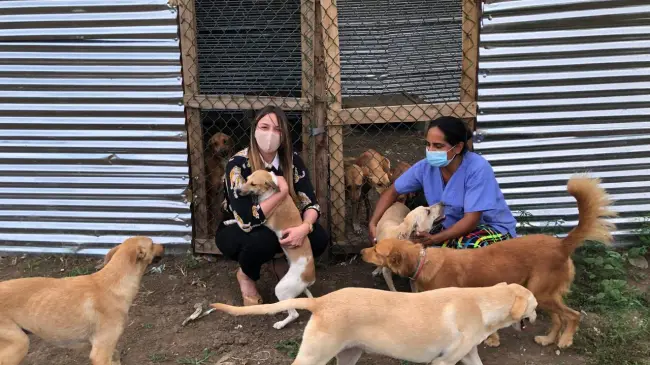 Este refugio de animales también alimenta a cientos de perritos que aún no han podido ser trasladados, y que están desprovistos de obtener comida de otra forma.