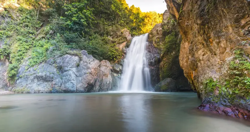6. El salto de Baiguate: El salto de Baiguate es una cascada de 25 metros ubicado a unos kilómetros de Jarabacoa que está escondida bajo un cañón, la cual cae formando una piscina natural de aguas color esmeralda.
