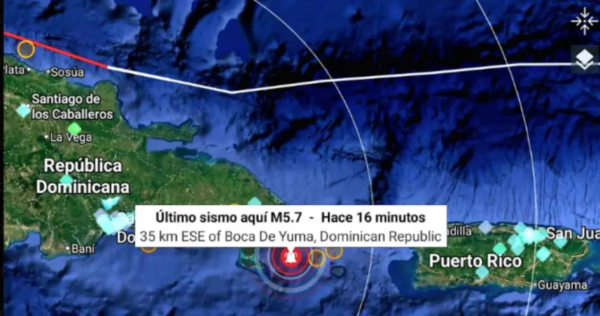Santo Domingo.– Un sismo de magnitud 5.7 se registró este martes con epicentro al sur de Punta Cana, al este de la isla Saona y al sureste de Boca de Yuma, informó el geólogo Osiris de León.