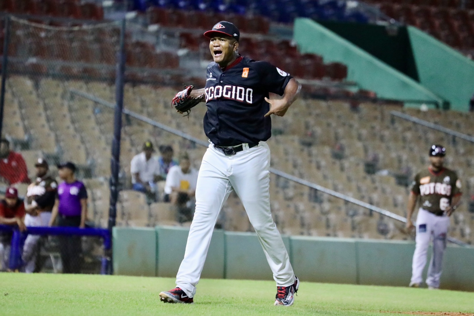 El inning grande de los locales fue el cuarto en el que llenaron las bases sin out con hits consecutivos de Franmil Reyes, Jorge Mateo y Michael Pérez. Anderson Pilar entró a lanzar y fue recibido con elevado de sacrificio de Yamaico Navarro al central, empujando la número dos de los melenudos.
