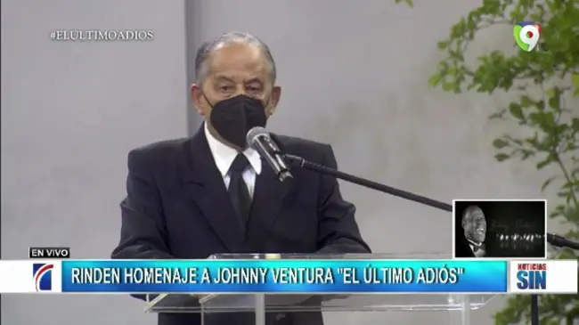 SANTO DOMINGO.- El periodista Huchi Lora, agradeció a todos los presentes y a los que siguieron el acto de despedida del merenguero Johnny Ventura “El último adiós”, en nombre de la familia Ventura, y entonó una décima dedicada al artista.