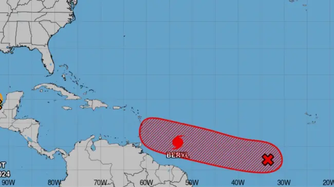 Huracán Beryl aumenta velocidad y se convierte en categoría dos