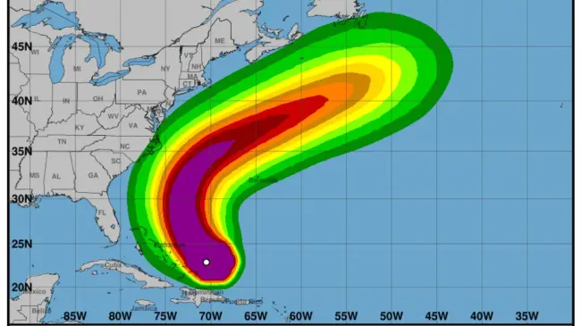 El Centro Nacional de Huracanes (NHC, en inglés) de Estados Unidos advirtió este lunes que el huracán, que se encuentra a unos 1.400 kilómetros al sur-sureste de Carolina del Norte, provocará en los próximos días oleajes peligrosos y corrientes de resaca que amenazan la vida en gran parte de la costa este de Estados Unidos, así como en las Bahamas, Bermudas y el Atlántico de Canadá.