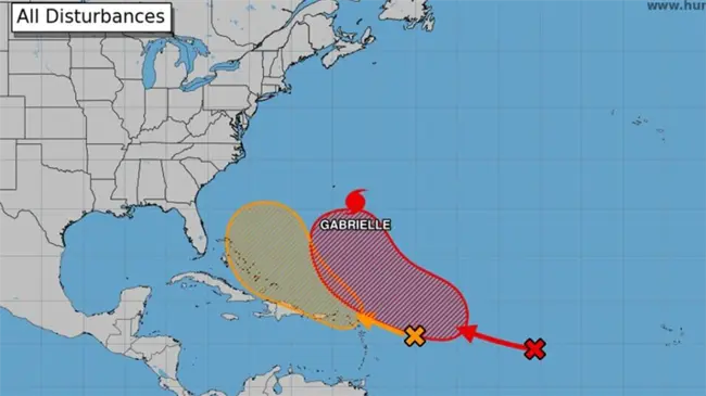 De acuerdo con el NHC, se espera que Gabrielle mantenga su desplazamiento hacia el norte durante este lunes y que el martes gire con mayor velocidad hacia el noreste o este-noreste.