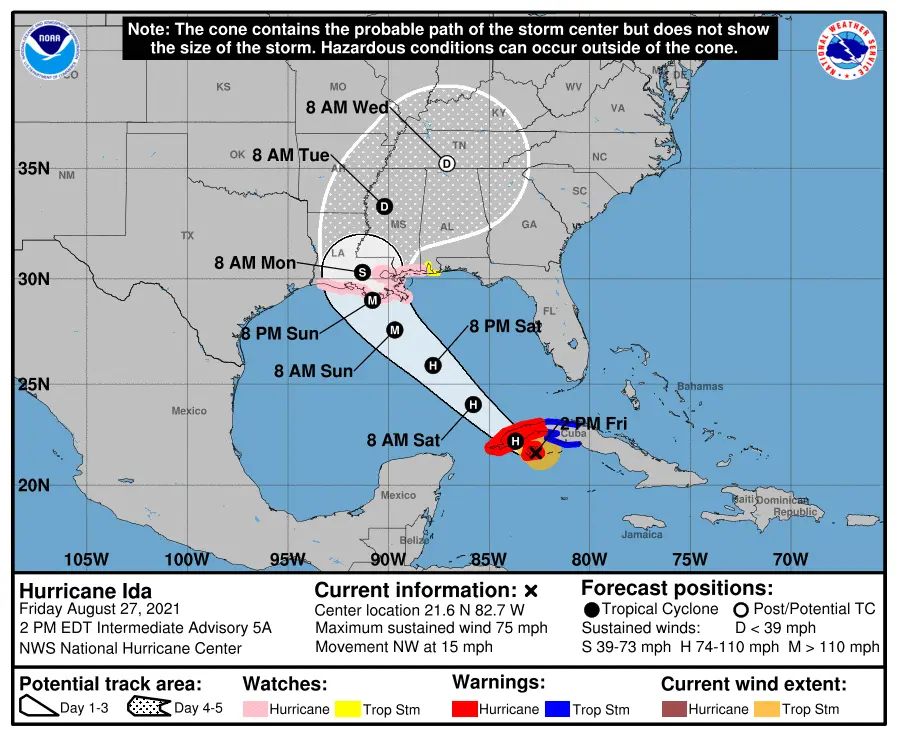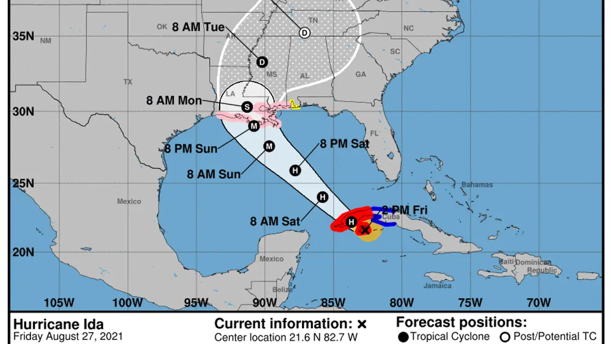 Se prevé que Ida mantenga su trayectoria hacia el noroeste en los próximos días y puede convertirse en un huracán de categoría mayor (3, 4 o 5 en la escala de Saffir-Simpson).