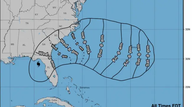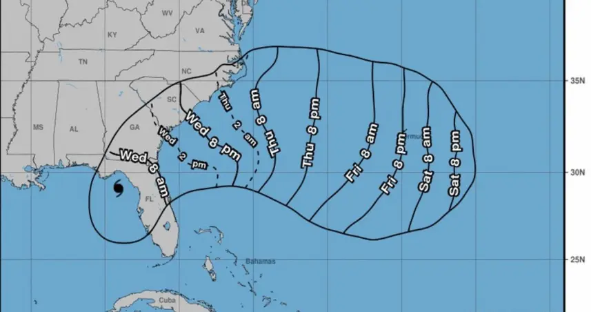 Además de los avisos de huracán y marejada ciclónica para el noroeste de Florida, el NHC emitió esta mañana un aviso de huracán para la costa este de EE.UU. desde Altamaha Sound en Georgia hasta Edisto Beach en Carolina del Sur.