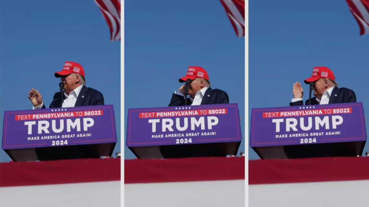 Redacción internaciona.– REDACCIÓN INTERNACIONAL.- Una secuencia de tres impactantes imágenes muestran el momento exacto en el que una bala impacta la oreja derecha del ex presidente Donald Trump, éste se toma el rostro y luego mira su mano ensangrentada. El francotirador que ejecutó el disparo falló en su intento de asesinato y luego fue abatido por las fuerzas de seguridad que se encontraban custodiando al ex jefe de estado y actual candidato a la presidencia del Partido Republicano.