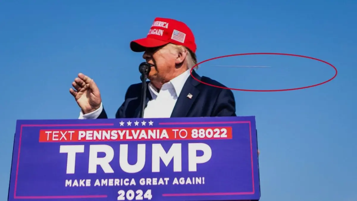 En esta foto se aprecia el momento justo en el que la bala pasa por el lado de Donald Trump