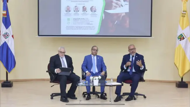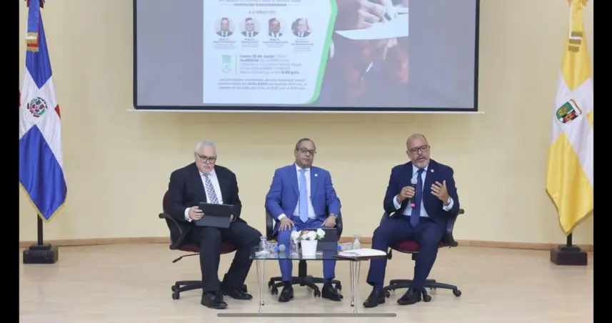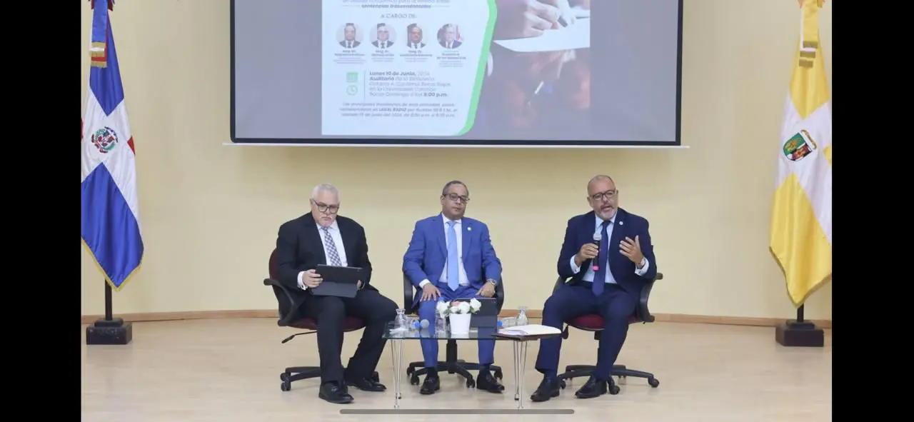 El evento, que reunió a destacadas figuras del ámbito jurídico, contó con la participación de Napoleón Estévez, presidente del Tribunal Constitucional de la República Dominicana; Samuel Arias, juez de la Suprema Corte de Justicia; y Gustavo de los Santos Coll, vicedecano de la Facultad de Ciencias Jurídicas y Políticas de la UCSD, quien moderó el debate de manera brillante.