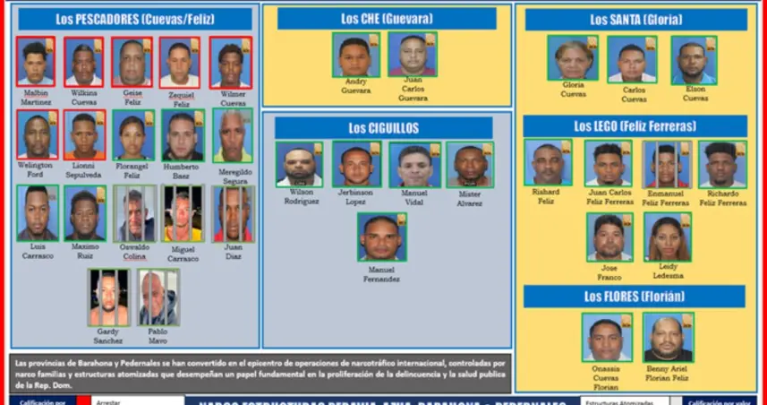 En ese mismo orden detalla que la recién desmantelada organización operaba simultáneamente en Peravia, Azua, Barahona, Pedernales y San Cristóbal, manejaba cantidades exorbitantes de dinero producto del narcotráfico, que era invertido en pagos de sobornos desde figuras políticas, comerciales, empresariales y militares para realizar sus operaciones ilícitas y/o contar con su amparo.