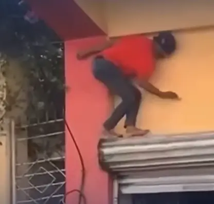 En un video que circula en redes sociales se visualiza como las mujeres esperan al presunto ladrón con escobas en manos, mientras el intenta no soltarse de la puerta y escapar.