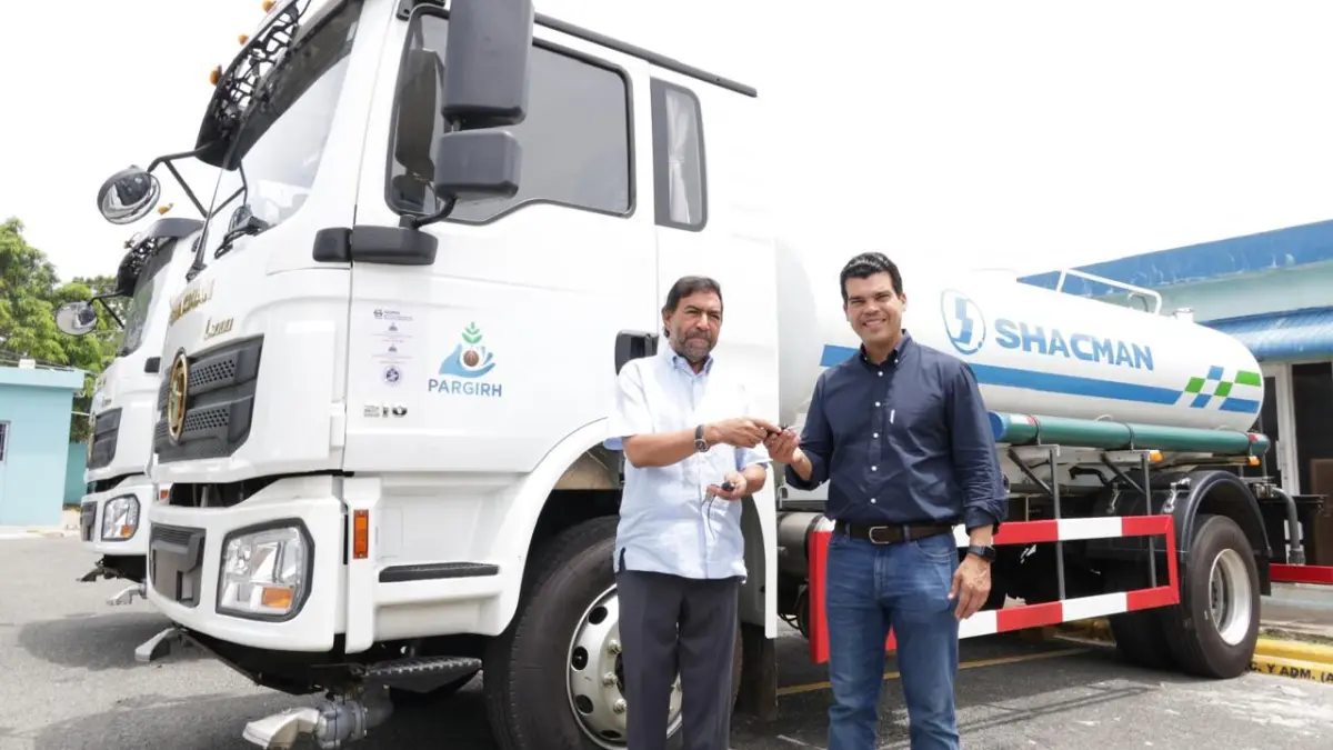 Santo Domingo.– SANTO DOMINGO.- El director ejecutivo del Instituto Nacional de Aguas Potables y Alcantarillados (INAPA), Wellington Arnaud, recibió dos camiones cisterna de manos del director ejecutivo del Instituto Nacional de Recursos Hidráulicos (Indrhi), Olmedo Caba, para suplir de agua potable territorios que forman parte del Proyecto Agricultura Resiliente y Gestión Integrada de los Recursos Hídricos en las Cuencas Hidrográficas Yaque del Norte y Ozama-Isabela (PARGIRH).