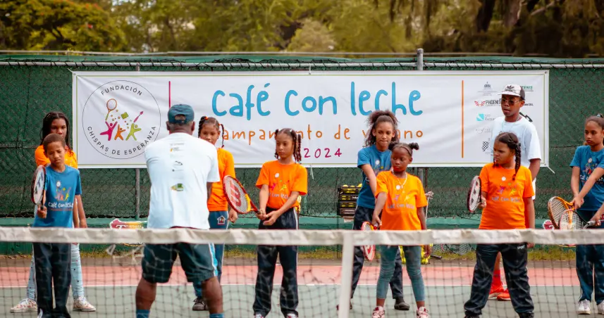 El Campamento de Verano Café con Leche es posible gracias a la organización de la Fundación Chispas de Esperanza y al apoyo del Ministerio de Deportes, FEDOTENIS, Industria de Fibras Dominicana, Vento, Phoenix Calibration, ARS Renacer, ACG Therapy, Tecni Electric y la Oficina Metropolitana de Servicios de Autobuses (OMSA), además de más de 50 colaboradores individuales aportaron a la iniciativa.
