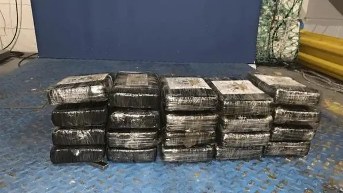 Los oficiales abrieron la sección dentro de la grúa del buque de la embarcación y encontraron artículos ocultos, incluidos objetos en forma de ladrillo que contenían una sustancia que dio positivo a las propiedades de la cocaína.