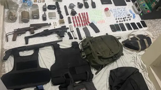Los allanamientos fueron realizados a dos viviendas donde fueron ocupados: una escopeta calibre 12 mm; un arma de fabricación casera(Chagon); un kit Runer de Glock; una mira telescópica; 4 chalecos antibalas.