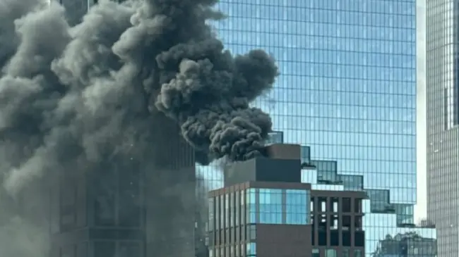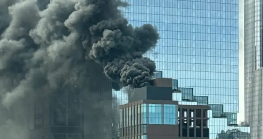 Nueva York.- Un incendio de gran magnitud se desató en el techo de un rascacielos de 44 pisos en Manhattan, Nueva York, específicamente en el edificio de lujo "The Set," ubicado en la 10th Avenue, entre las avenidas 35th y 36th.