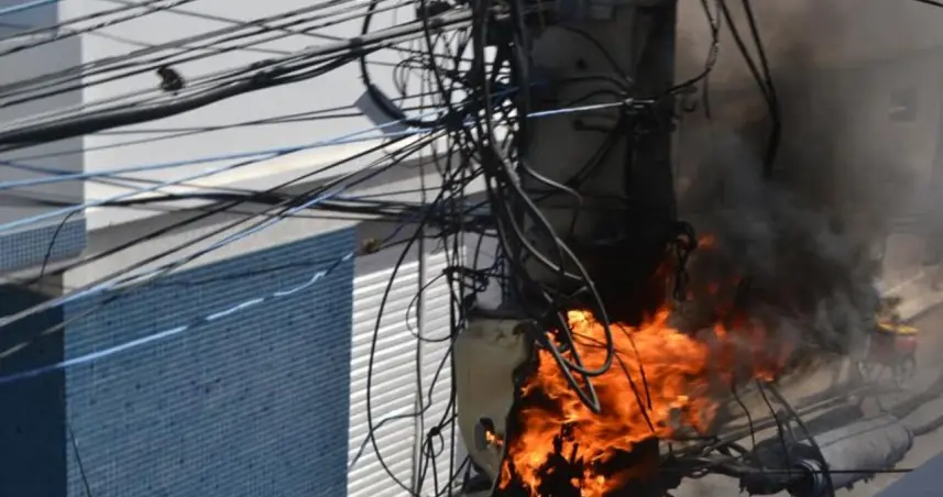 En un vídeo enviado a nuestra redacción, se aprecia cómo las llamas se extienden cubriendo parte del automóvil estacionado y afectado el cableado. Hasta el momento se desconoce la causa del incidente.