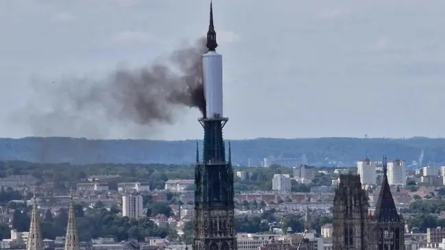 París.– París.- Un incendio afecta a la flecha de la catedral gótica de la ciudad francesa de Ruán (Normandía, noroeste), donde se están realizando trabajos de restauración, un suceso que ha evocado, con diferentes proporciones, al grave fuego de Notre Dame de París de abril de 2019.