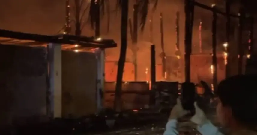 El incendio afectó principalmente locales construidos con madera y palma, lo que facilitó la rápida propagación de las llamas.