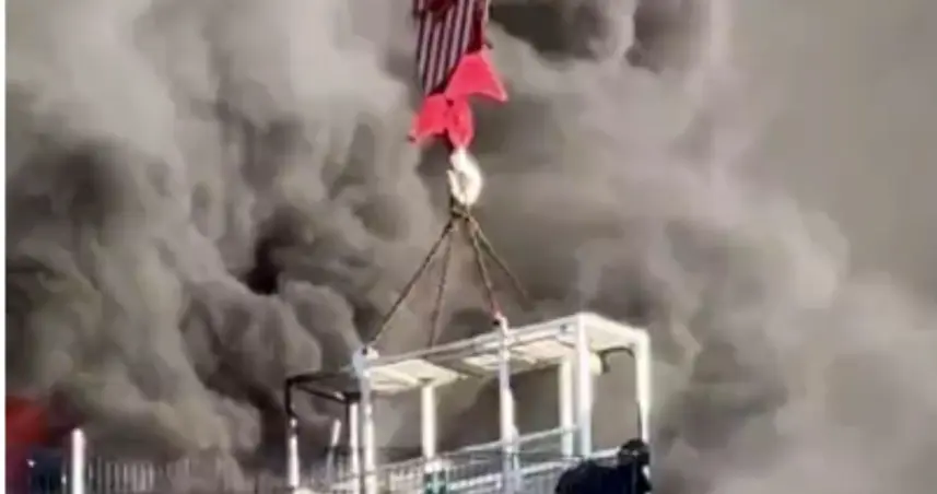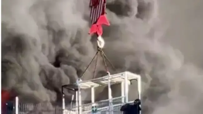 En las impactantes imágenes, una persona atrapada entre las llamas es rescatada con la ayuda de una grúa, mientras en el suelo, una multitud consternada observa cómo los bomberos luchan contra el incendio.