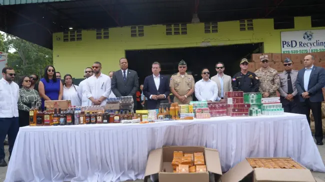 Santo Domingo. – En un esfuerzo por combatir el comercio ilícito en la República Dominicana, se incineraron productos del comercio ilícito, entre ellos, bebidas alcohólicas, tabacos, medicamentos, incluyendo más de 11 mil litros de clerén y 16 mil botellas de alcohol ilícito, en presencia de autoridades civiles y militares, así como de representantes del sector privado.