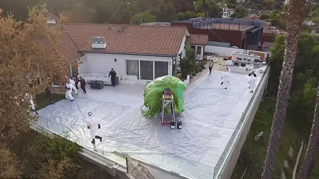 ¡Increíble! Volcán de espuma gigante explota en un patio de California