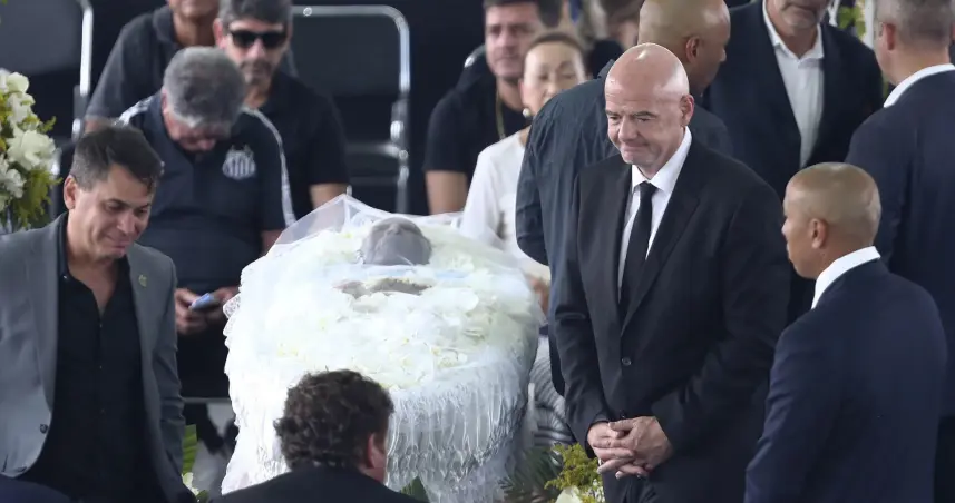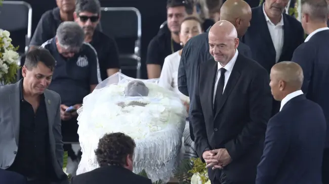 Infantino llegó al estadio Vila Belmiro de la ciudad brasileña de Santos unos 40 minutos antes del inicio de las exequias por Pelé acompañado del presidente de la Conmebol, Alejandro Domínguez, y el presidente de la Confederación Brasileña de Fútbol (CBF), Edinaldo Rodrigues.
