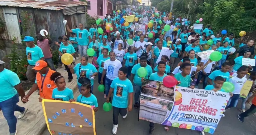 Monte Plata.– MONTE PLATA.-Con bizcocho, vejigas y música de cumpleaños fue celebrado el segundo año de haberse derrumbado el puente-Convento que comunica a los sectores Dionicio y La Placeta con el casco urbano del municipio Peralvillo en la provincia Monte Plata.