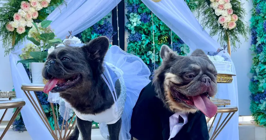 La boda fue celebrada en casa de la artista con un aproximado de 30 invitados , muchas asistieron con sus perritos vestidos acorde para la boda, una celebración por todo lo alto con bocadillos y champaña y bizcocho tanto para los invitados perrunos como para los humanos lol.
