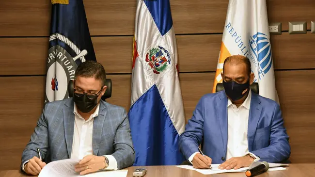SANTO DOMINGO.- El Ministerio de Obras Públicas (MOPC) y la Autoridad Portuaria Dominicana (Apordom) firmaron este lunes un convenio interinstitucional para ejecutar el "Plan Nacional de Rehabilitación, Remozamiento y Construcción de los Muelles Pesqueros”.