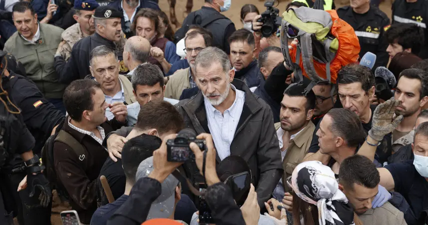 Insultan y lanzan barro a la comitiva de los reyes de España en su visita a ciudades inundadas