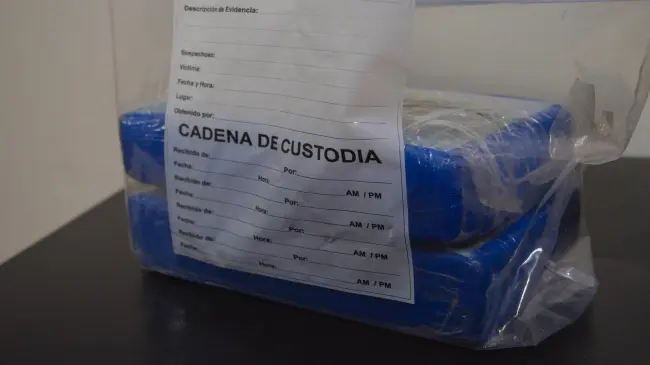 Por instrucciones del fiscal, se procedió a inspeccionar el carro, Hyundai, modelo Elantra, placa A968560, ocupando (encaletados) debajo de la palanca de los cambios, 02 paquetes de cocaína, con un peso de 2,100 gramos, según el análisis del Instituto Nacional de Ciencias Forenses (INACIF).